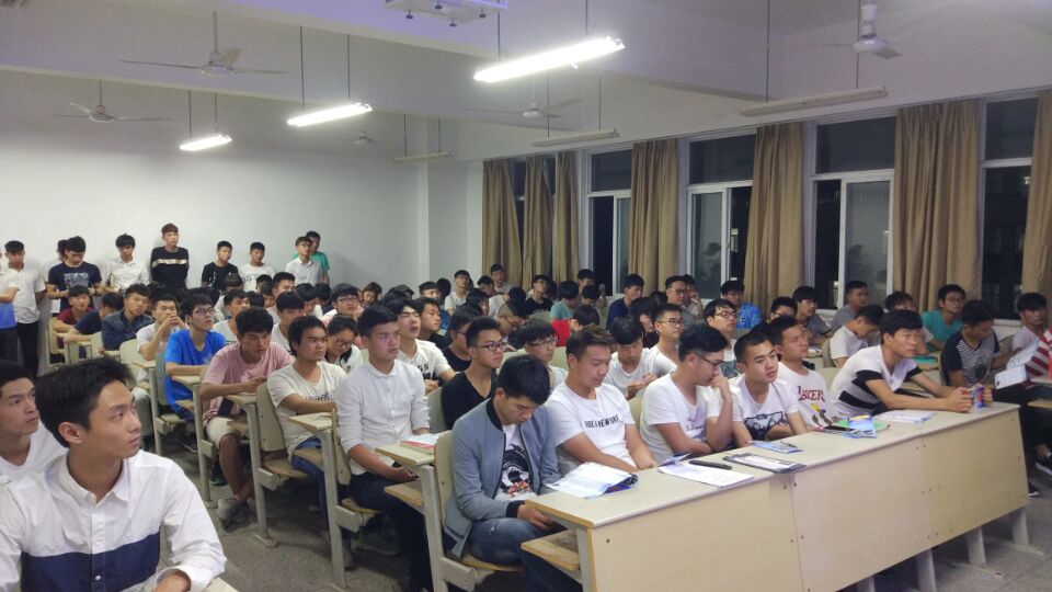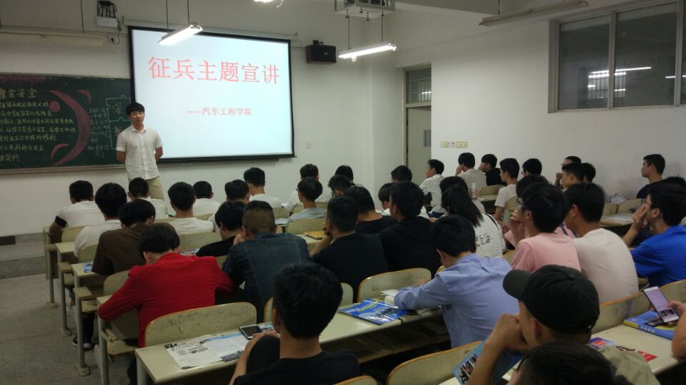 为加强征兵政策宣传,做好2017年大学生应征入伍工作,5月5日晚汽车工程学院开展“征兵主题宣讲活动”,辅导员郑老师和蔡老师担任主讲人,汽车工程学院15级和16级全体男生参加了此次活动。