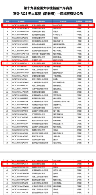 11月26日,第十九届全国大学生智能汽车竞赛室外ROS无人车赛(职教组)圆满落幕。我校汽车学院三支参赛团队凭借卓越的创新能力与扎实的专业素养,在激烈的竞争中脱颖而出,分别荣获区域赛两个一等奖和一个三等奖的佳绩,其中学生康亚、赵友浩、温斌杰和叶炜所在团队“PASSION队”晋级国赛。