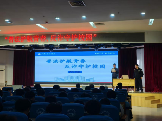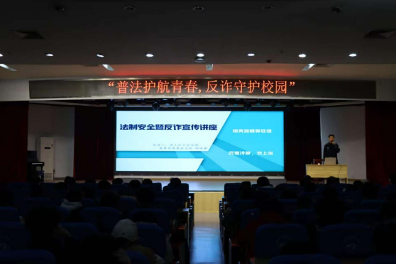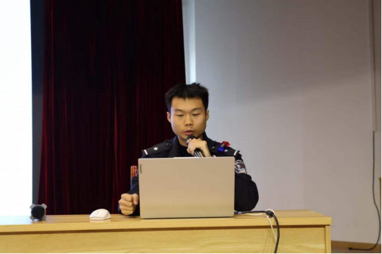 讲座中,周警官围绕“校园普法”与“反诈防骗”两大主线展开宣讲。在普法教育部分,他从“法律意识养成、行为边界认知、风险防范应对”三个维度切入,结合高校学生常见法律盲区,提醒同学们知法守法、防微杜渐。他还深度剖析了校园生活中易被忽视的违法行为,引导大家树立底线思维,避免因无知或侥幸触碰红线。